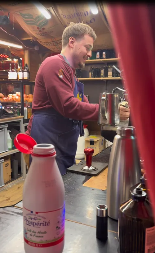 Retrouvez notre lait Prospérité au marché de Noel d’Arras dans les délicieuses boissons chaudes du chalet Maison Vayez !