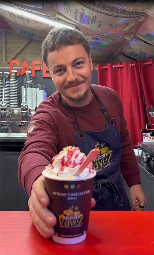 Dans ses boissons chaudes – chocolat chaud, cappuccino, latte, café au lait… – la Maison Vayez a fait le choix d’utiliser notre lait régional Prospérité, affirmant ainsi son attachement à la qualité des ingrédients, au savoir-faire local et aux filières de proximité. Une démarche cohérente, qui allie excellence gustative et engagement territorial.
